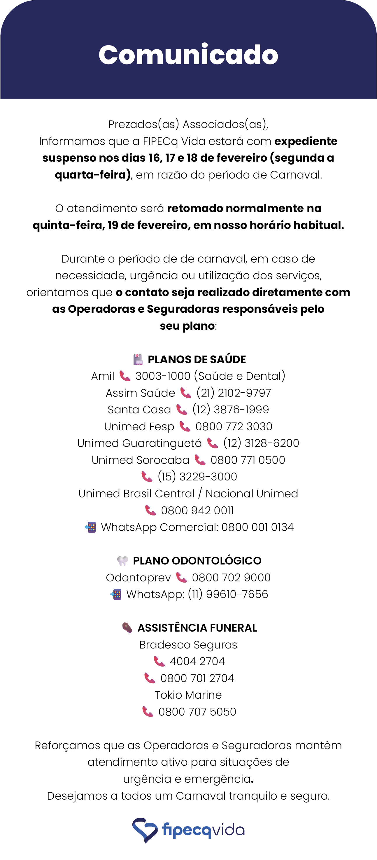 A FIPECq Vida, comprometida com o bem-estar dos seus Associados, oferece uma ampla gama de Programas assistenciais que visam apoiar a saúde, qualidade de vida e segurança financeira de seus beneficiários. Confira os destaques: ... [Continua]