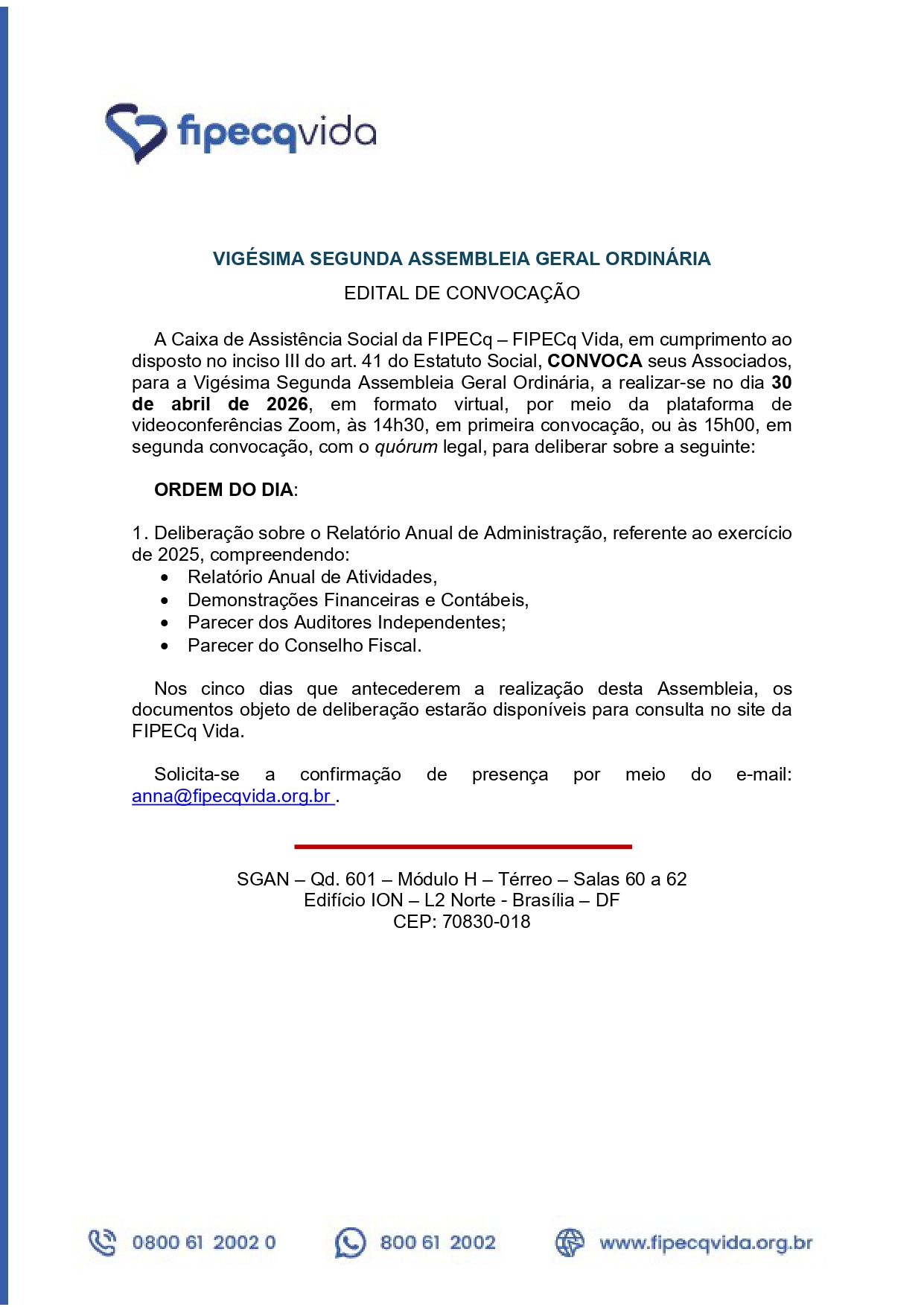 A FIPECq Vida, comprometida com o bem-estar dos seus Associados, oferece uma ampla gama de Programas assistenciais que visam apoiar a saúde, qualidade de vida e segurança financeira de seus beneficiários. Confira os destaques: ... [Continua]